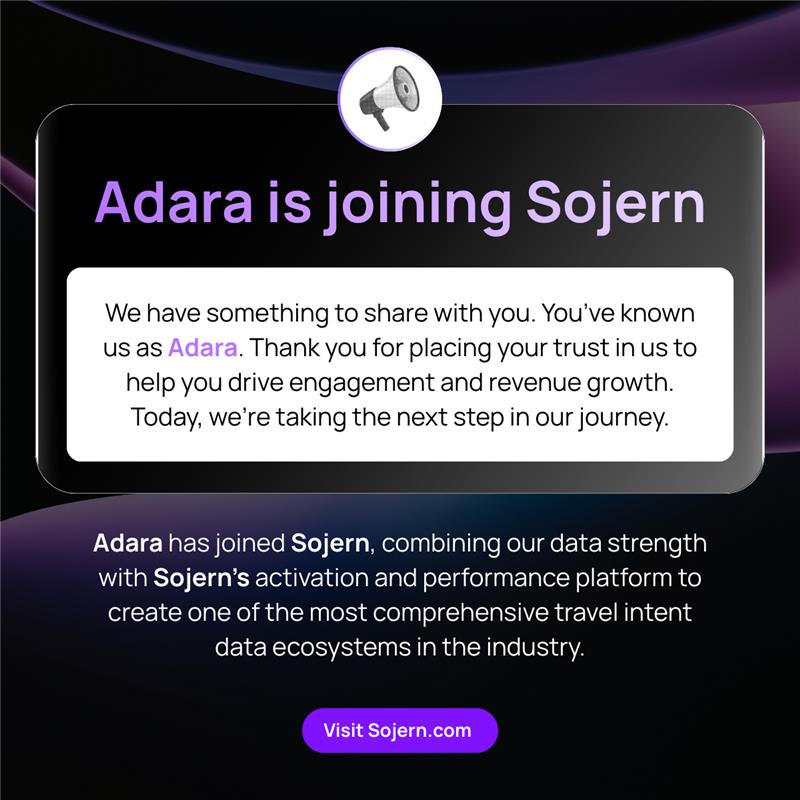 Adara's (a RateGain company) official domains are limited to the following two addresses: adara.com and rategain.com.  Any other domain variations or addresses are not authorized by us.